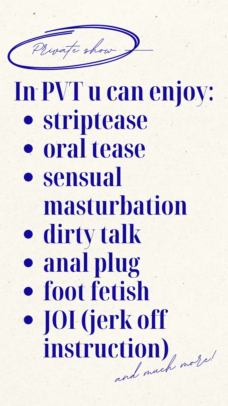 喫煙, ヒール, 手コキ, シャワー, ペニス評価, 下ネタ話, ディルドまたはバイブ, 精液プレイ, unimited control link 125 tk, 顔面騎乗位, トップレス, オイルショー, エッチなダンス, オナニー, アヘ顔, 大人のおもちゃ, 羞恥, 足コキ, 猿ぐつわ, 69 ポジション, 会社, 手マン, ディープスロート